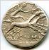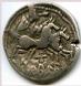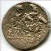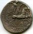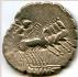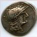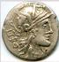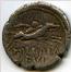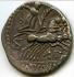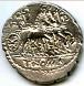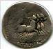 M188+. Obverse type of C. Licinius Macer, reverse type of M. Acilius, after 84 BC; cf. Cr-354/1 (O) and 255/1 (R), 4.37g, serrate. Both sides very close copies; slightly blundered exergual legend on reverse, inappropriate legend above horses. Would be classed as Copy if types were properly matched, although neither prototype is serrate.