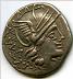 M182+. Obverse type of Q. Marcius Libo, reverse type of L. Flamininus Chilo, after 109 BC; cf. Cr-215/1 (O) and 302/1 (R), 3.18g. Both sides somewhat stylized; accurate obverse legend; blundered, recognizable reverse legend.