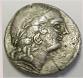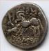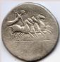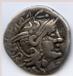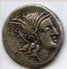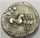 AH1. Types of C. Curiatus Trigeminus, after 135 BC; cf. Cr-240/1, 5.11g. Both sides stylized; blundered, meaningless reverse legend. Placed here with some trepidation, because its style doesn't differ drastically from other imitations. But it is so heavy that that fact seems noteworthy in itself; also, it was purchased along with AH3, and gives every appearance of having been found with it as well.