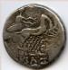 AH5. Obverse type of C. Piso Frugi, various reverse prototypes, after 67 BC; cf. Cr-408/1 (O), 4.42g. Both sides somewhat stylized; no obverse legend, reverse legend illegible. Very debased silver.