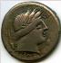 C42. Types of L. Furius Brocchus, after 63 BC; cf. Cr-414/1, 4.17g. Both sides somewhat stylized; slightly blundered, essentially accurate rlegends.