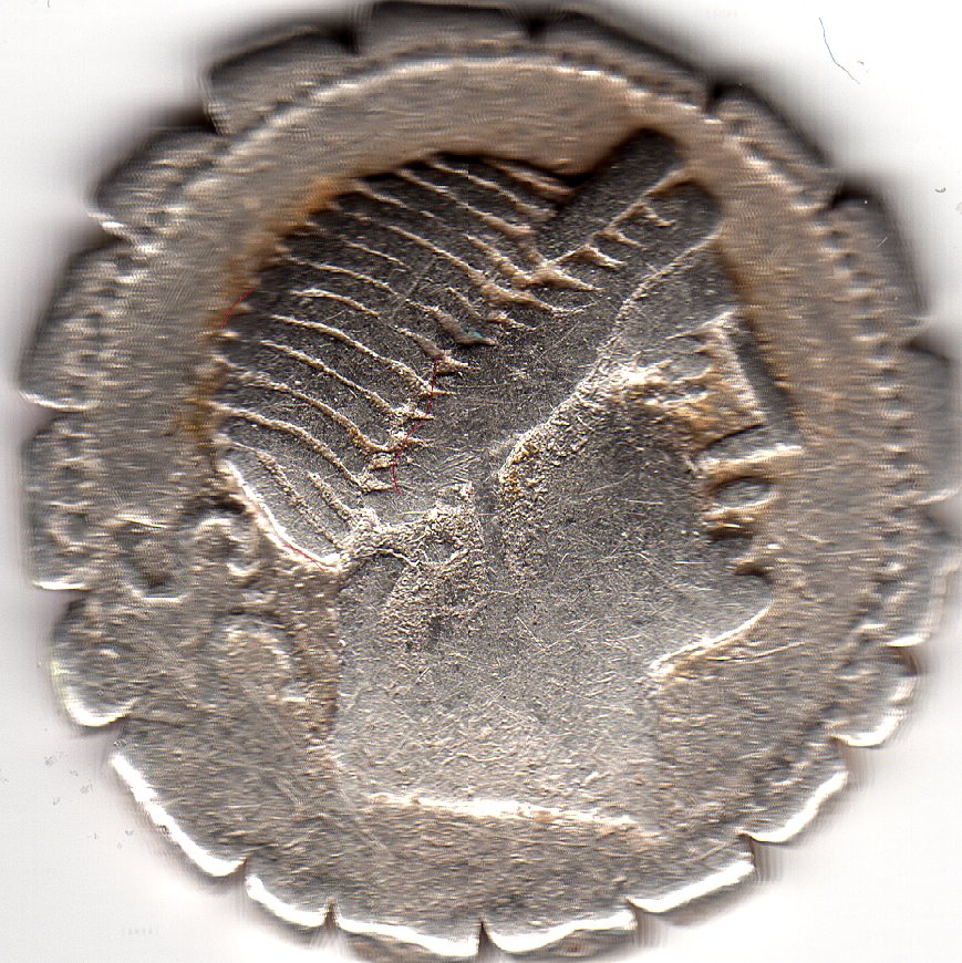 C52. Types of C. Mamilius Limetanus, after 82 BC; cf. Cr-362/1, 3.15g, serrate. Both sides accurate copies, the obverse perhaps faintly stylized; slightly blundered, largely correct reverse legend.