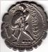 C51+. Types of L. Flaminius Chilo, after 109 BC; cf. Cr-302/1, 3.72g. Both sides a bit stylized; accurate obverse legend; somewhat blundered, recognizable reverse legend.